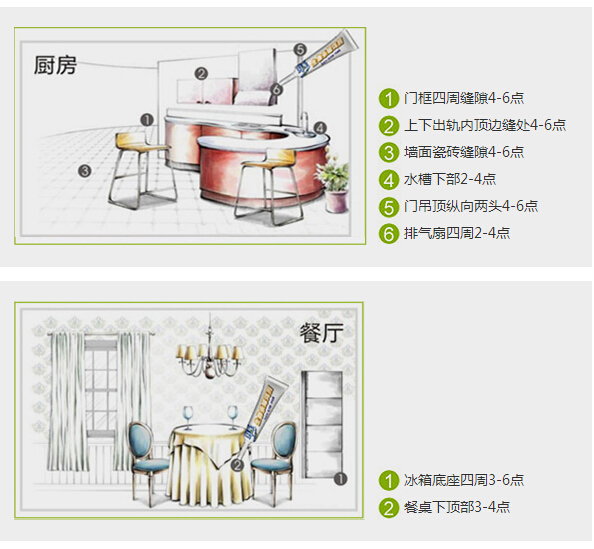 (3)施藥點(diǎn)選在食物,水源附近及邊角旮旯,各類縫隙里面。