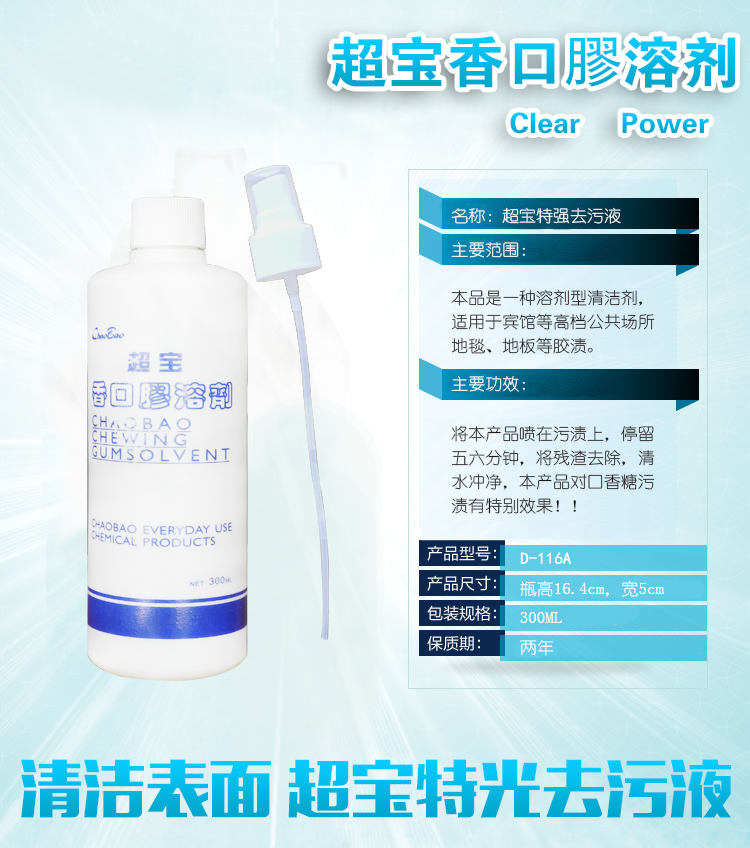 超寶牌 香口膠溶劑 地毯除膠劑 口香糖清洗劑 超強(qiáng)除膠劑 清潔劑